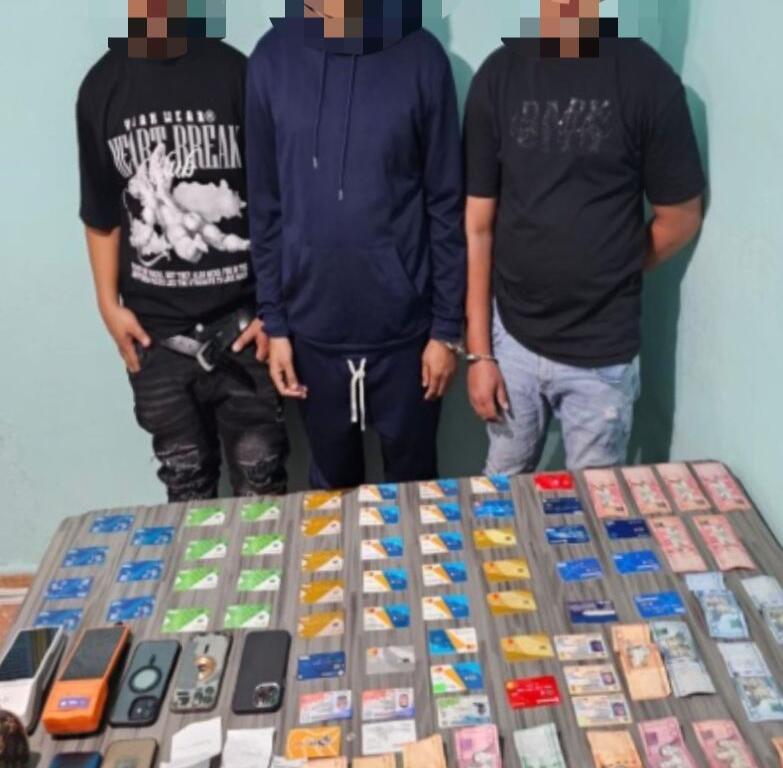 HATO MAYOR. La Policía Nacional informó del apresamiento en flagrante delito de tres hombres en la calle Duarte de este municipio, a quienes se les investiga por su presunta participación en una red dedicada al fraude con tarjetas bancarias en cajeros automáticos.